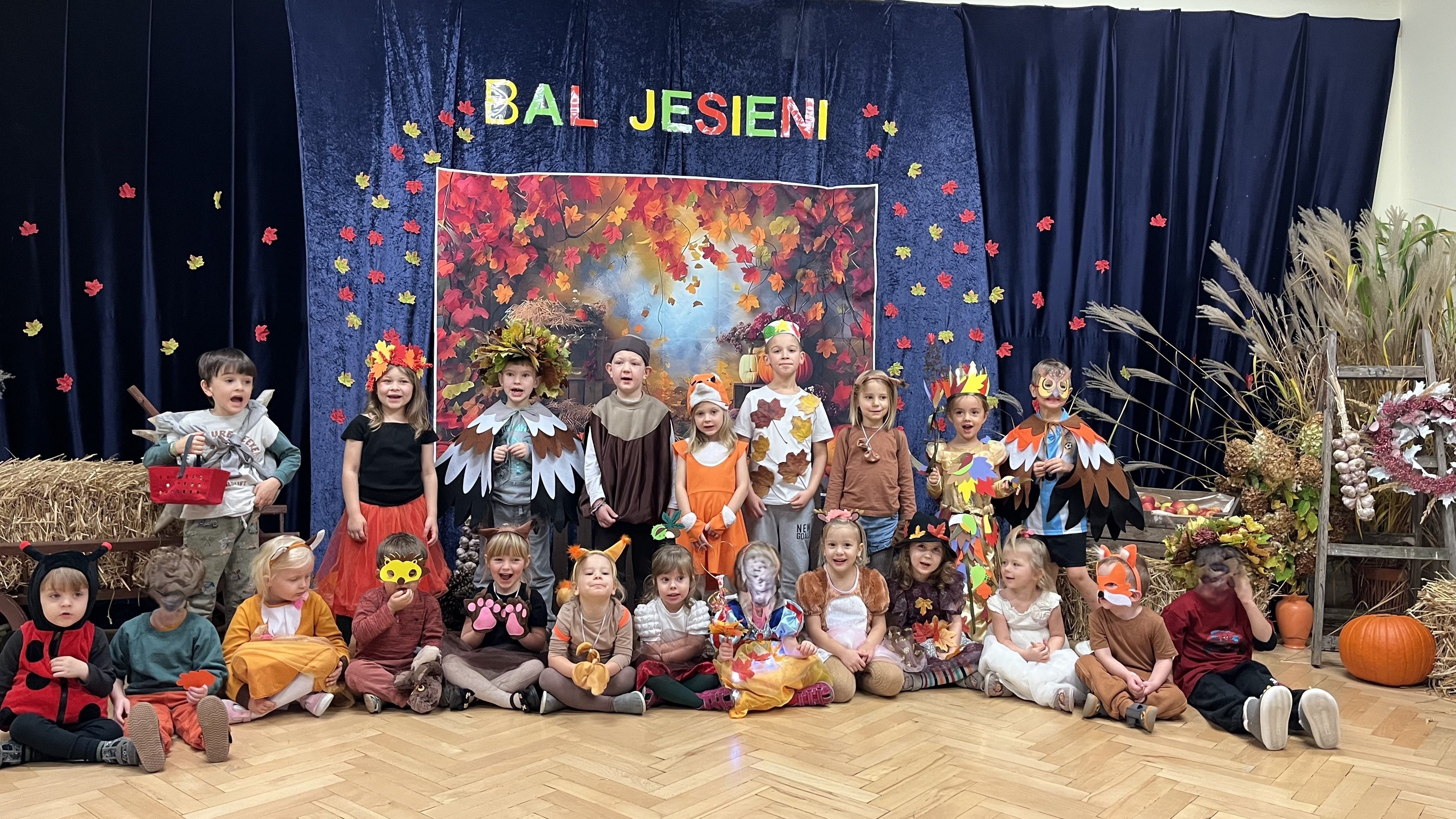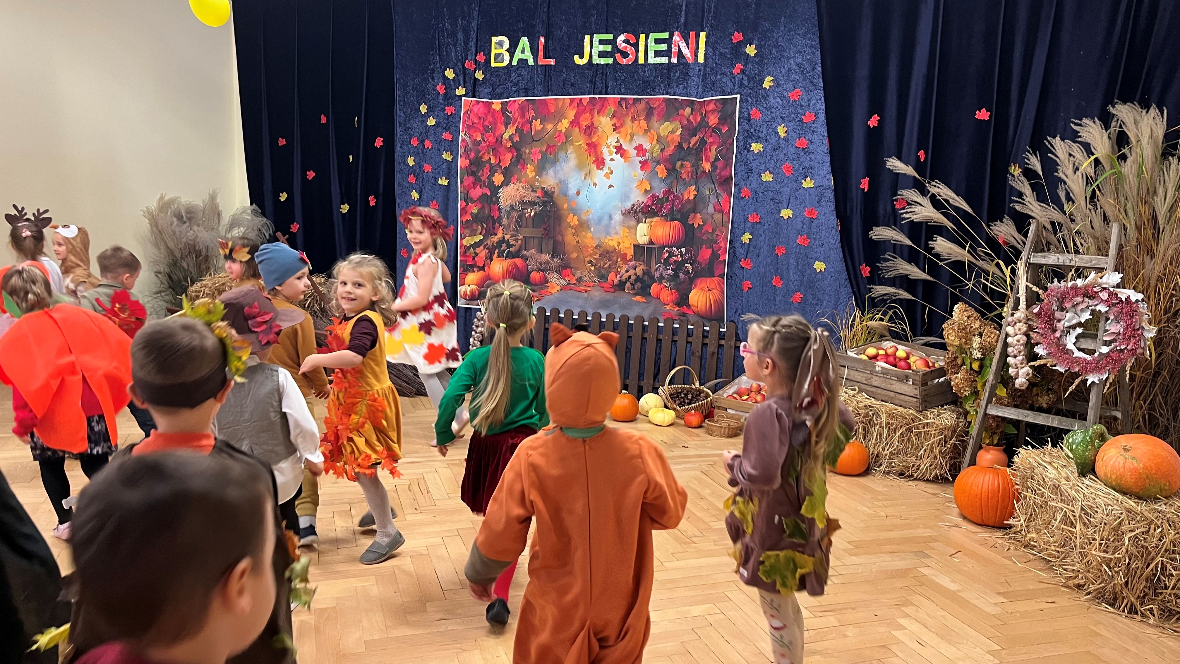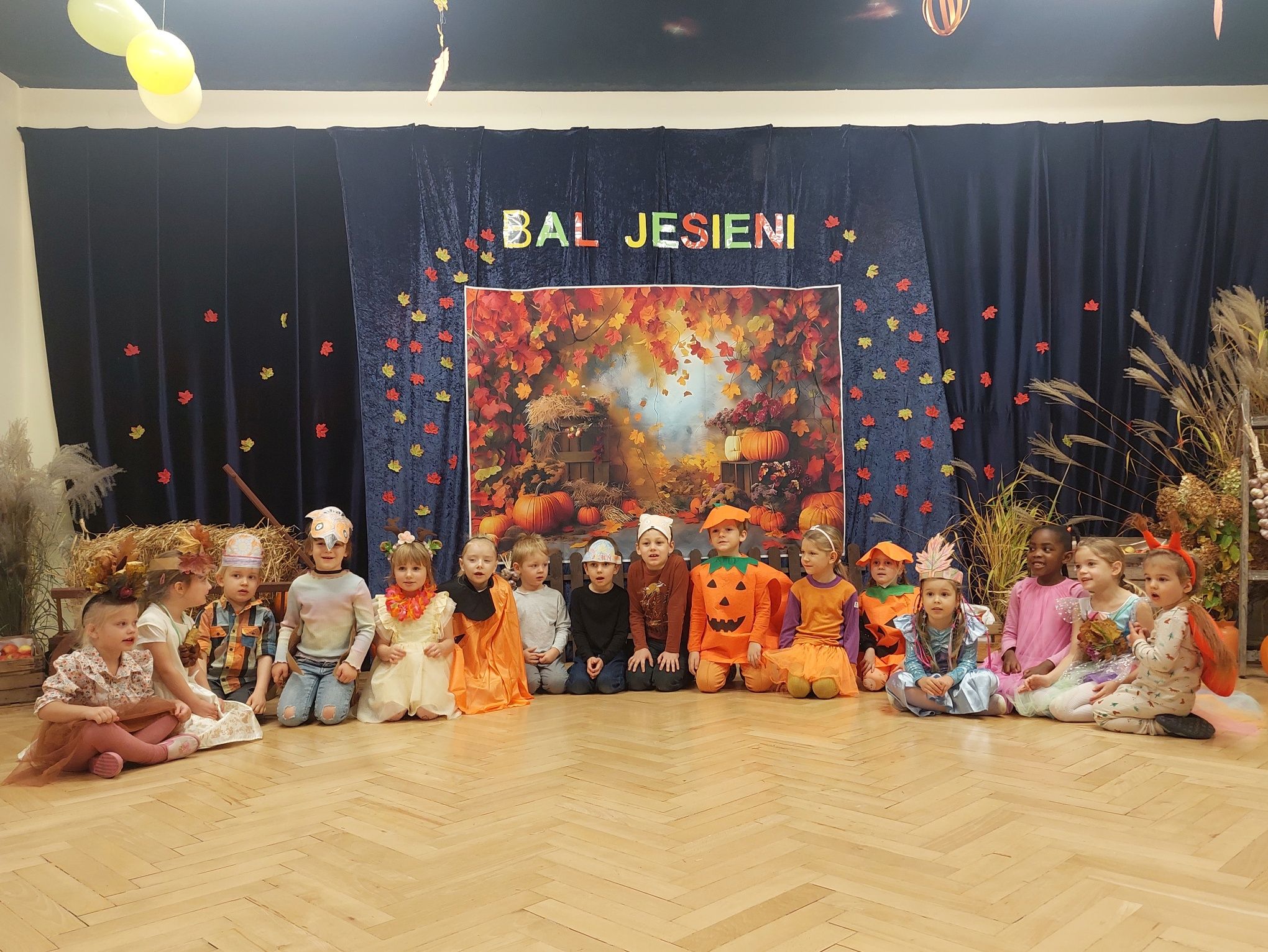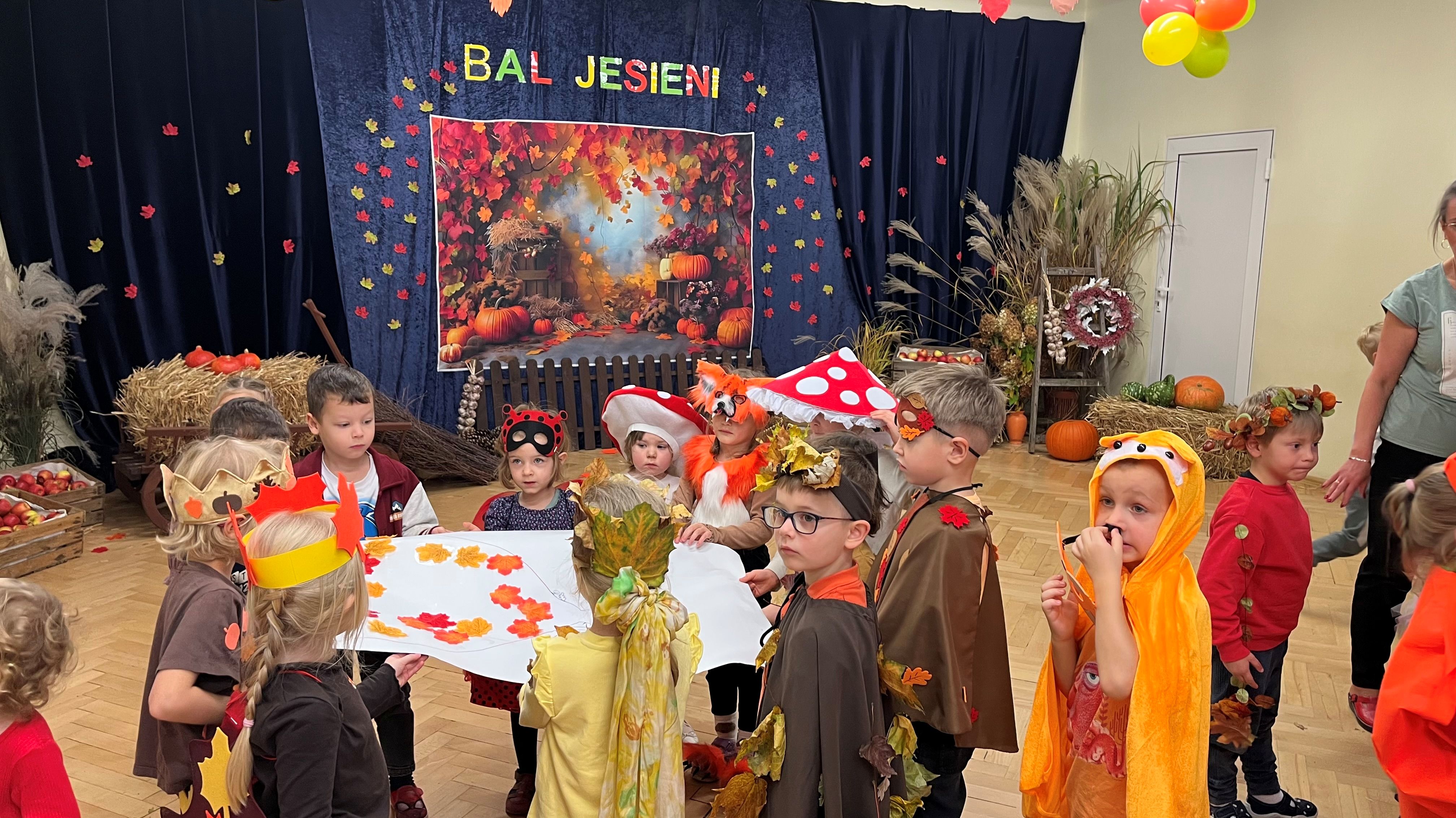 W naszym przedszkolu zrobiło się naprawdę kolorowo! W piątek 24.10.2025 r. odbył się długo wyczekiwany Bal Jesieni, który wypełnił salę tanecznymi rytmami, śmiechem i jesienną magią. Już od rana przedszkolaki pojawiały się w przepięknych, barwnych strojach – wśród uczestników można było spotkać dynie, liście, grzybki, wiewiórki, a nawet elegancką Panią Jesień! Każda grupa zaprezentowała swoje kostiumy podczas wspólnego korowodu, a zachwytom nie było końca. Bal rozpoczął się radosnym tańcem przy dźwiękach ulubionych dziecięcych piosenek. Nie zabrakło też zabaw ruchowych, zagadek, konkursów zbierania darów jesieni i dekorowania sukni Pani Jesieni, ale przede wszystkim wspólnych pląsów. Uczestnicy balu bawili się doskonale, czego dowodem były przepiękne uśmiechy na twarzach. To był dzień pełen uśmiechu i dobrej zabawy! Dziękujemy wszystkim Rodzicom za przygotowanie pięknych strojów, a naszym Przedszkolakom – za wspaniałą zabawę i cudowną atmosferę. Jesień w naszym przedszkolu naprawdę potrafi być magiczna!