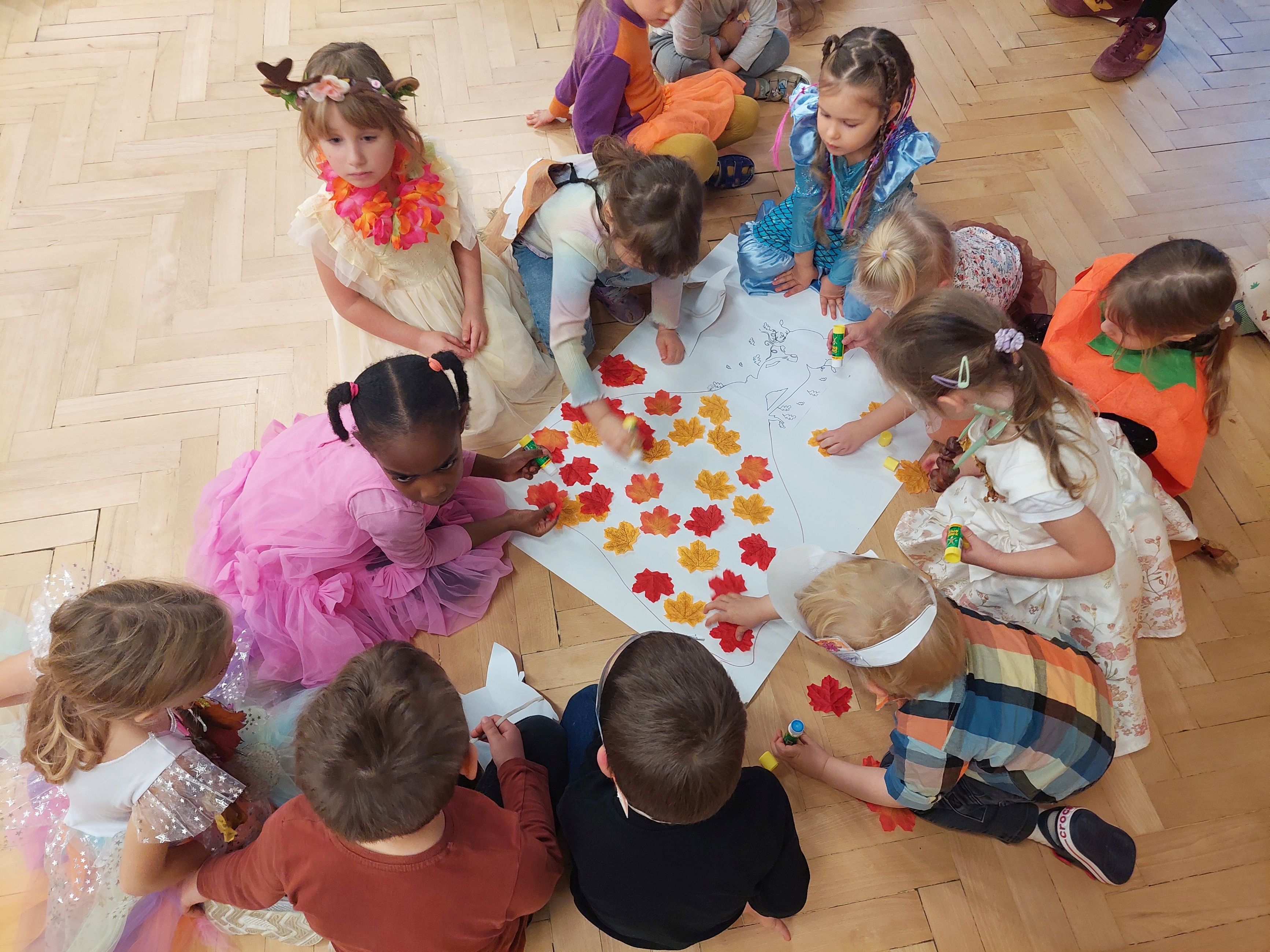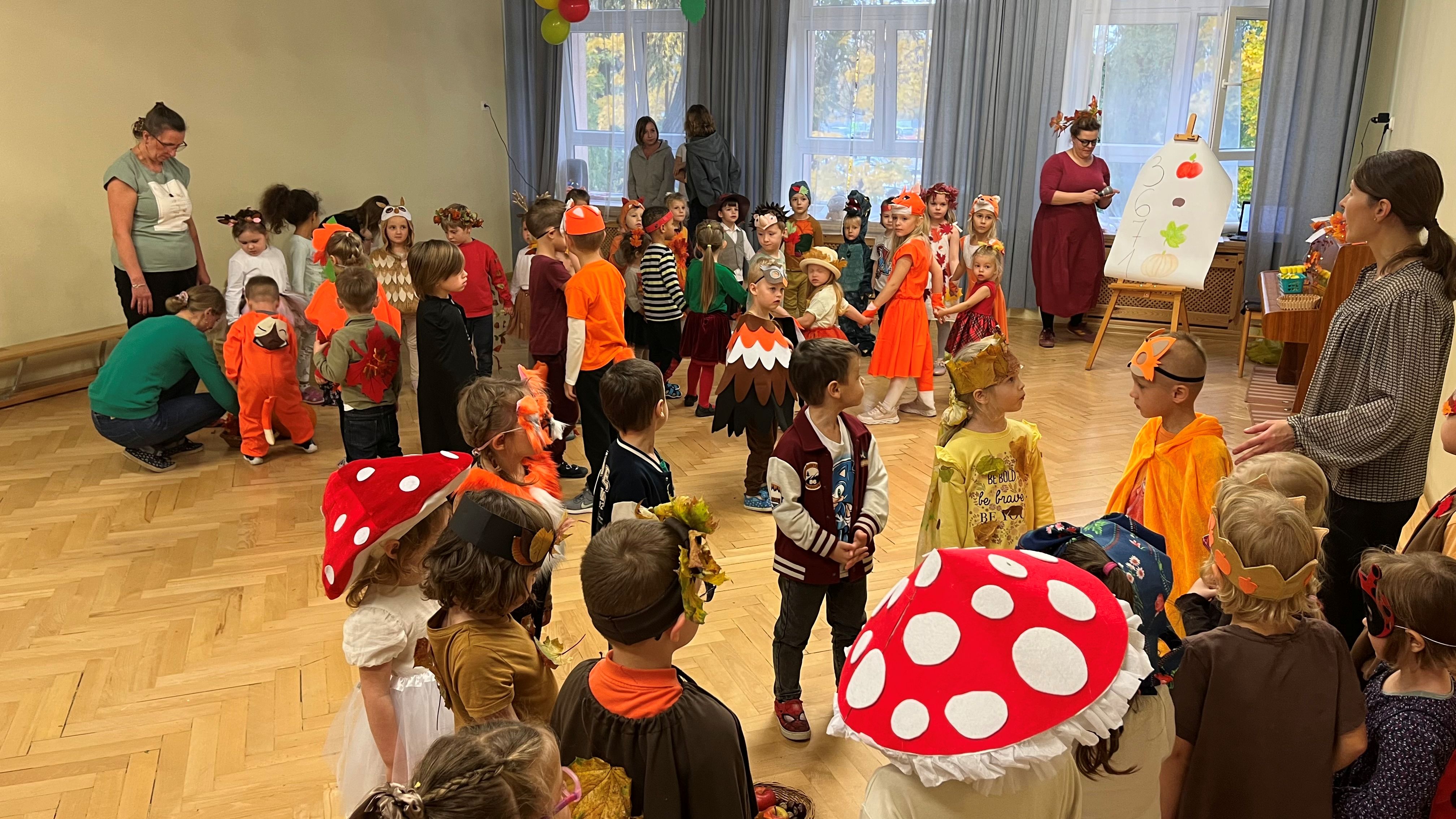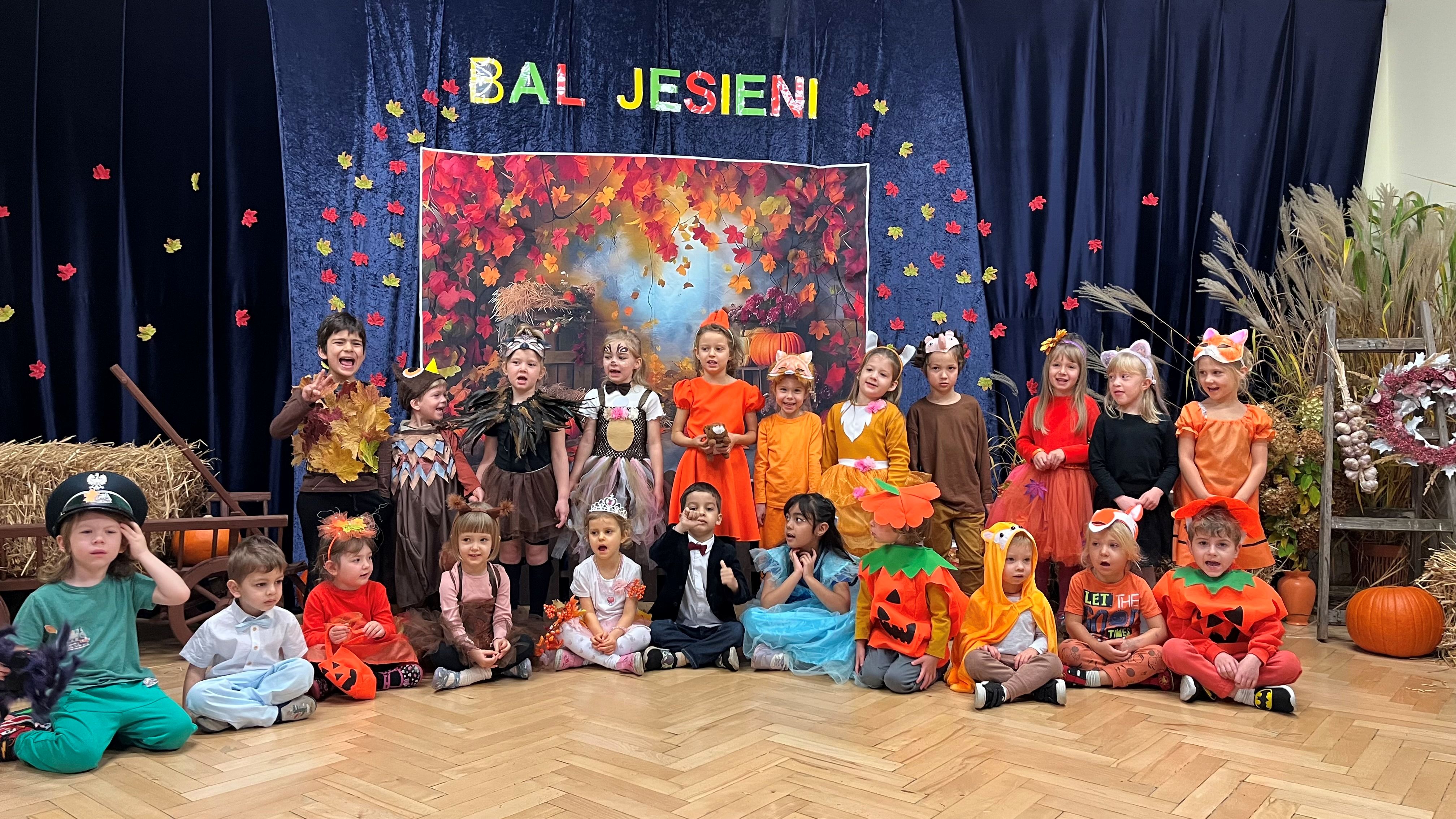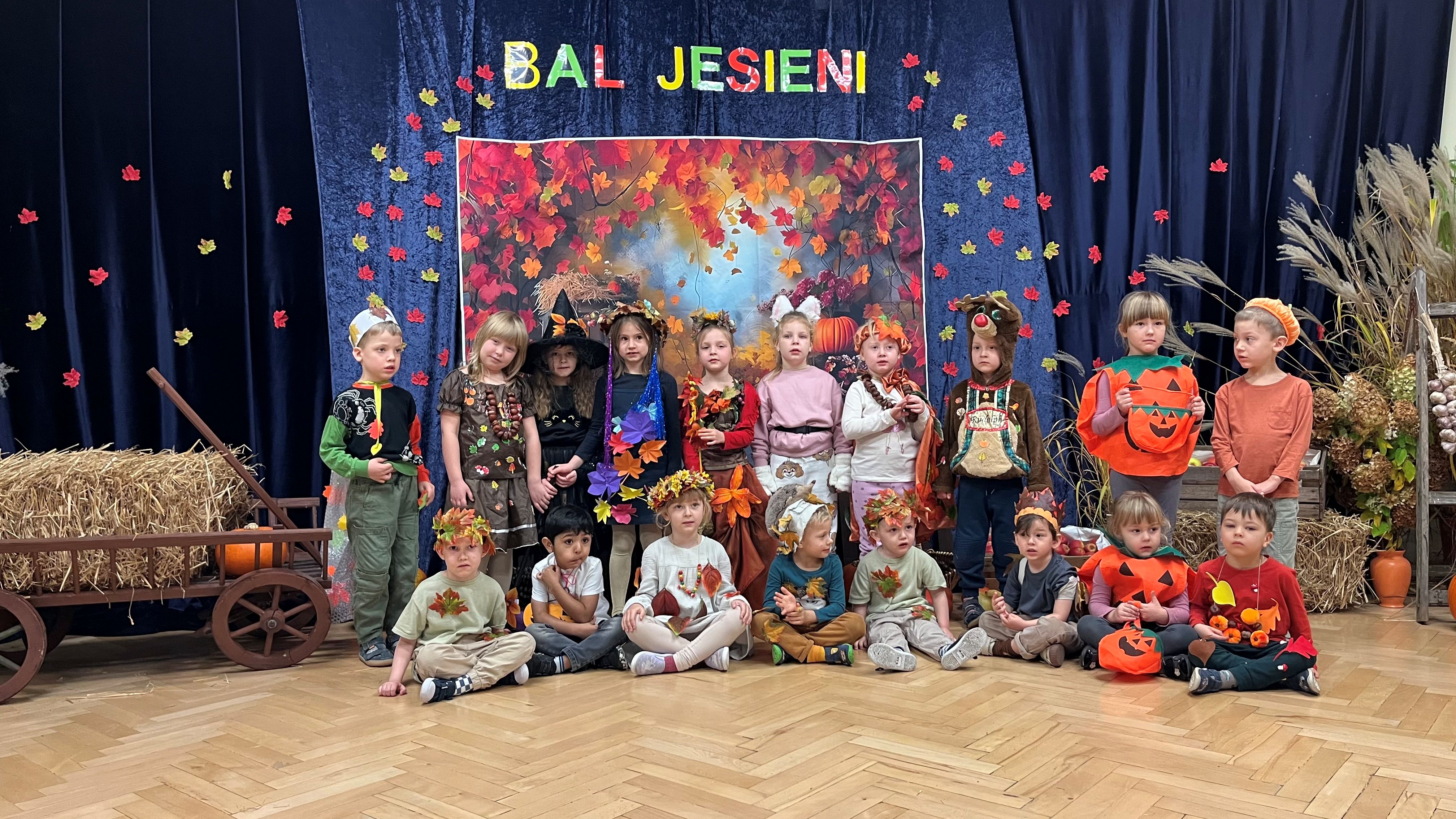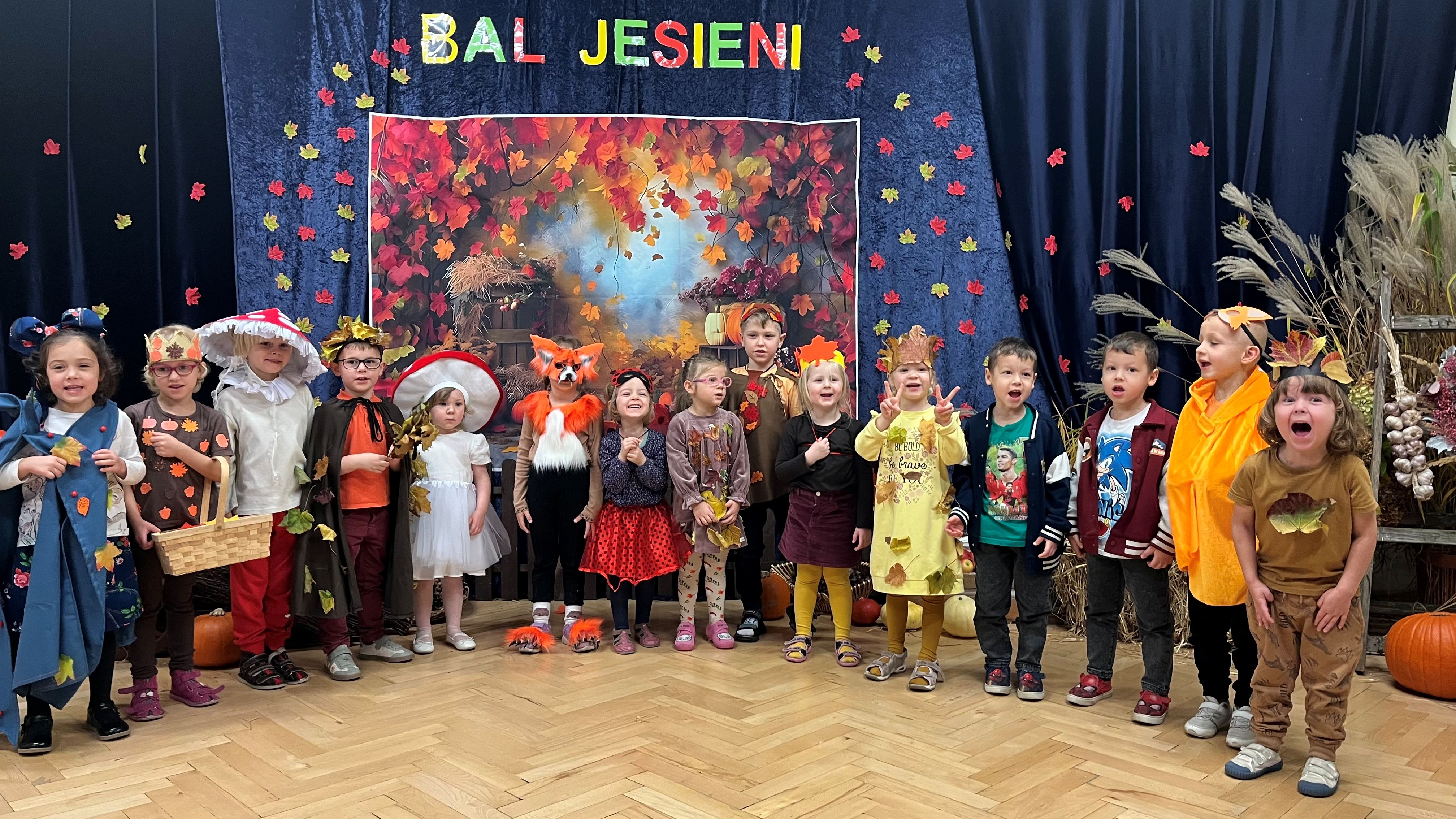 W naszym przedszkolu zrobiło się naprawdę kolorowo! W piątek 24.10.2025 r. odbył się długo wyczekiwany Bal Jesieni, który wypełnił salę tanecznymi rytmami, śmiechem i jesienną magią. Już od rana przedszkolaki pojawiały się w przepięknych, barwnych strojach – wśród uczestników można było spotkać dynie, liście, grzybki, wiewiórki, a nawet elegancką Panią Jesień! Każda grupa zaprezentowała swoje kostiumy podczas wspólnego korowodu, a zachwytom nie było końca. Bal rozpoczął się radosnym tańcem przy dźwiękach ulubionych dziecięcych piosenek. Nie zabrakło też zabaw ruchowych, zagadek, konkursów zbierania darów jesieni i dekorowania sukni Pani Jesieni, ale przede wszystkim wspólnych pląsów. Uczestnicy balu bawili się doskonale, czego dowodem były przepiękne uśmiechy na twarzach. To był dzień pełen uśmiechu i dobrej zabawy! Dziękujemy wszystkim Rodzicom za przygotowanie pięknych strojów, a naszym Przedszkolakom – za wspaniałą zabawę i cudowną atmosferę. Jesień w naszym przedszkolu naprawdę potrafi być magiczna!